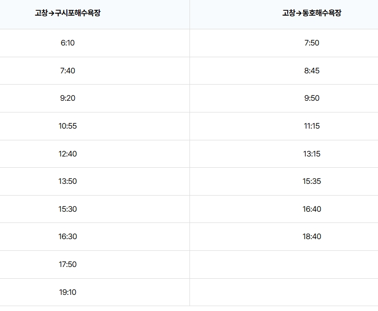 고창 시내버스 군내버스 농어촌버스 시간표 및 노선