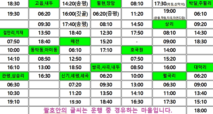 괴산군 시내버스 시간표 및 농어촌버스