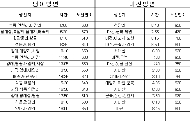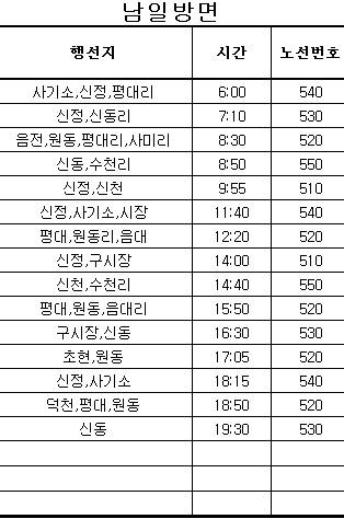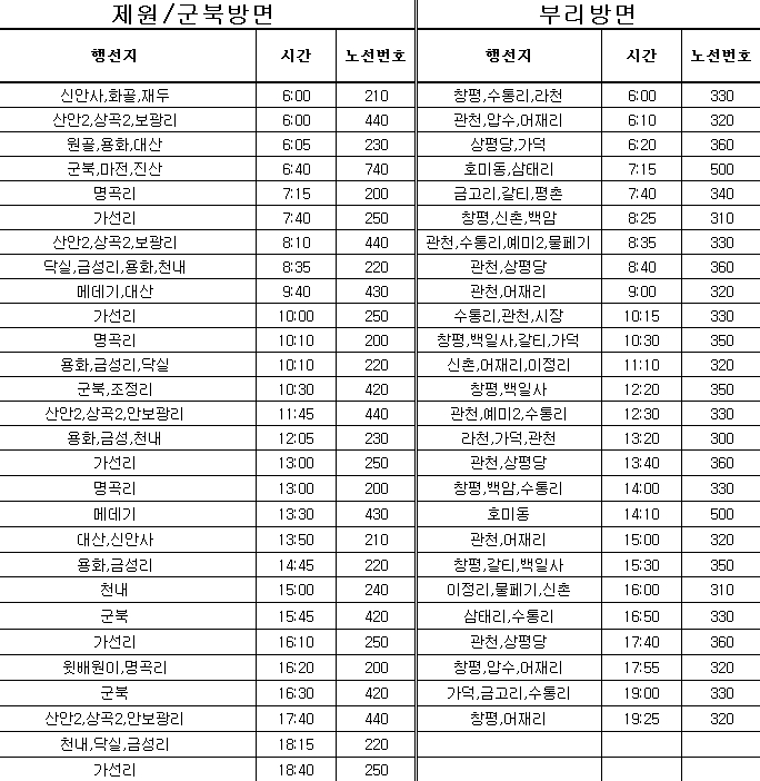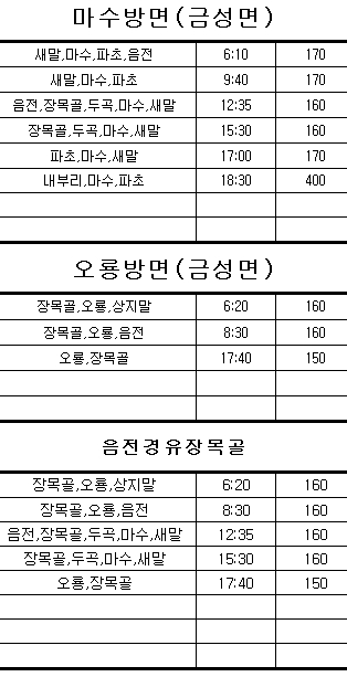 금산 시내버스 시간표 농어촌 버스 시간표 정리