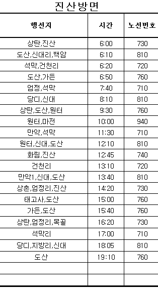 | 예산 시내버스 시간표 농어촌버스 시간표 (0) | 2025.07.16 |