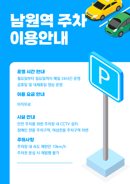 남원역: 주차장 관련 직접적인 정보를 얻을 수 있습니다.