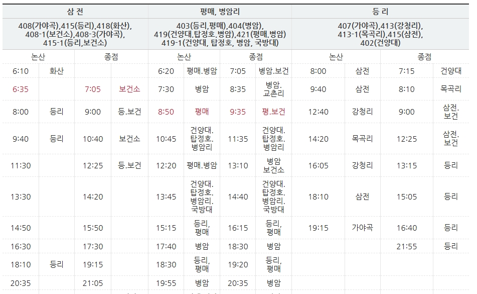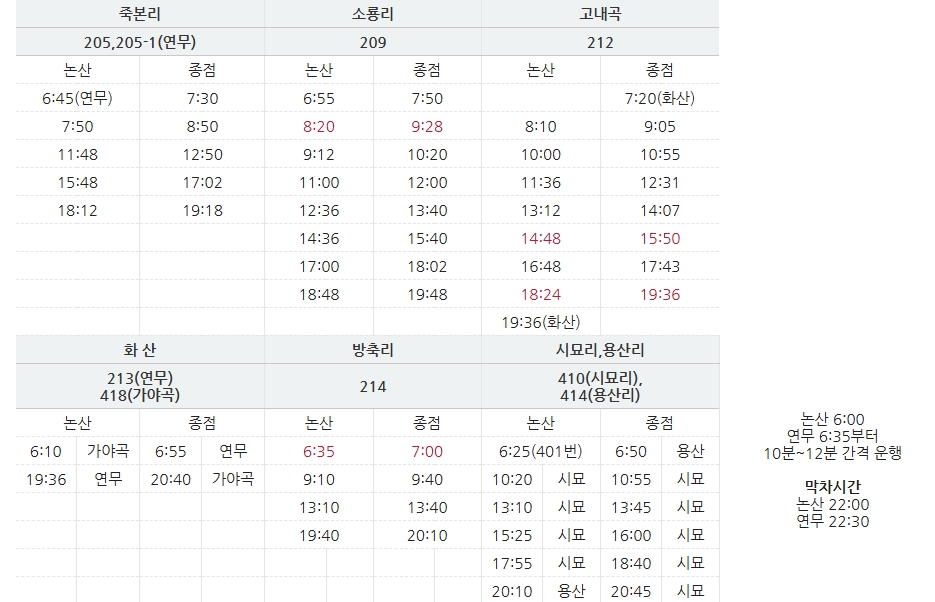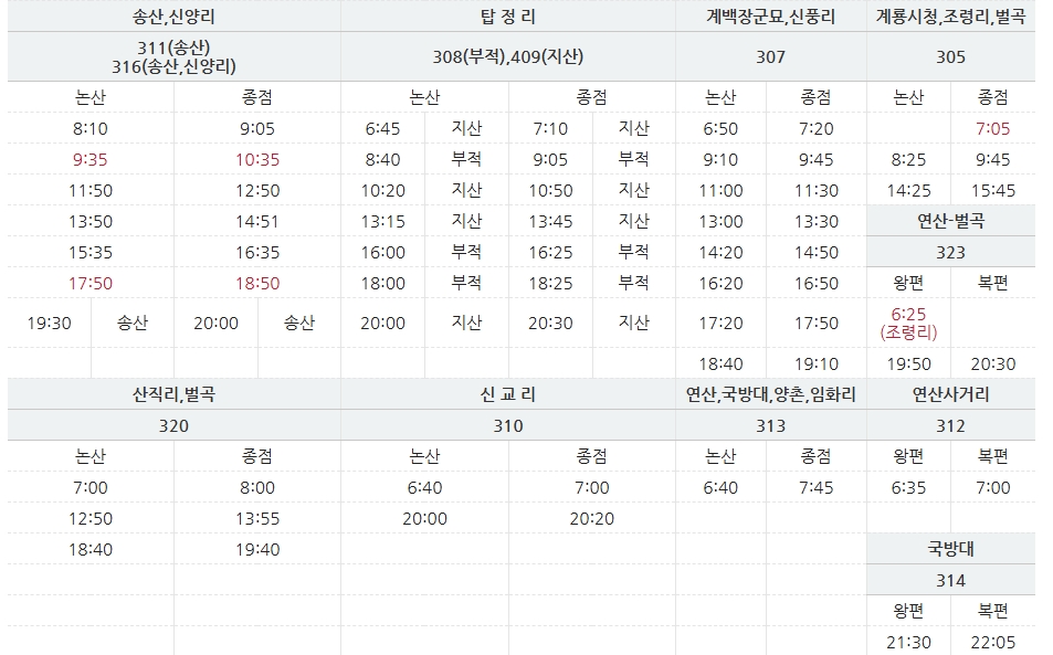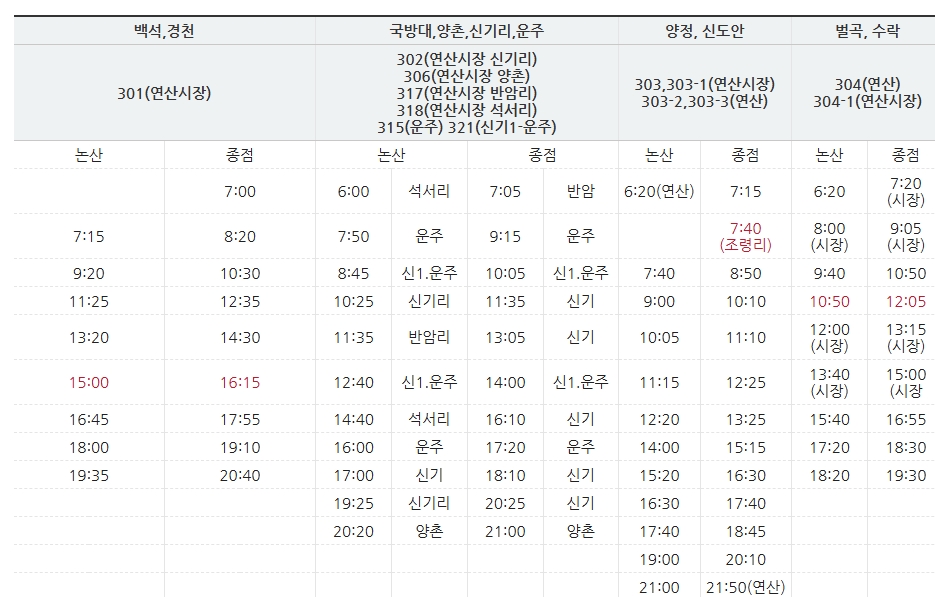 연무·강경 등지로 향하는 300번대와 500번대 노선은 하루 410회 운행됩니다.