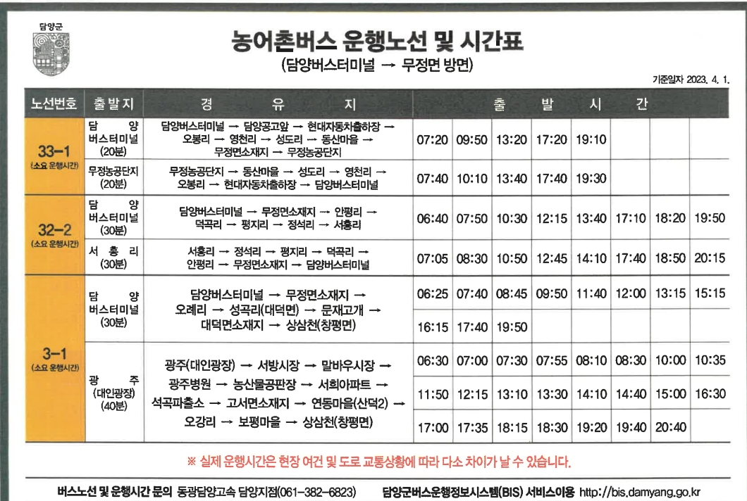 담양 농어촌버스 시간표, 이건 꼭 기억하세요!