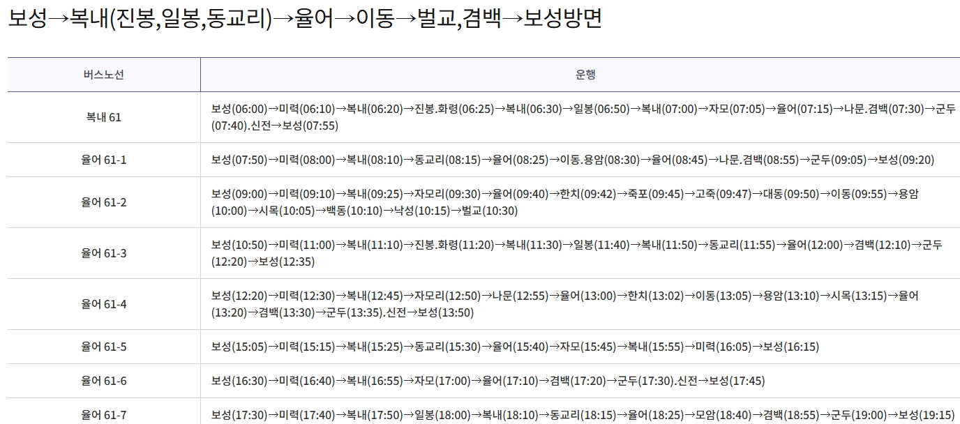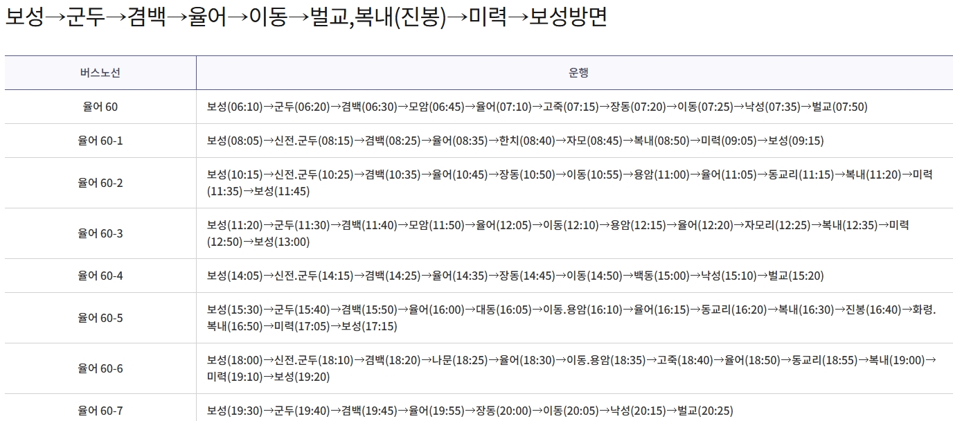 주요 노선 소개/ 보성군내버스
