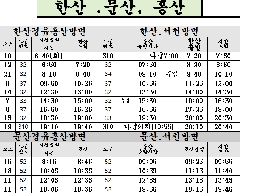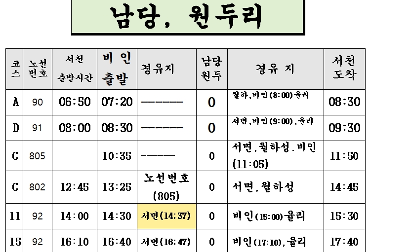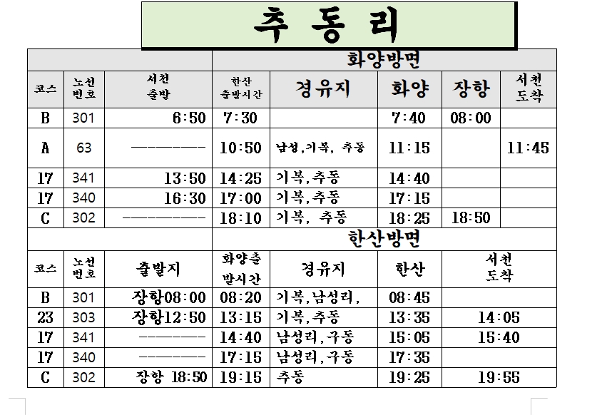 최근 노선이나 시간 변경이 종종 있으므로, 최신 업데이트된 자료 확인은 필수입니다.