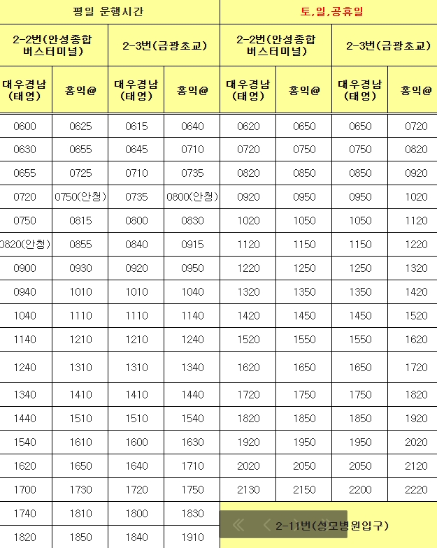 노선마다 배차 패턴이 일정하지 않아, 시간표 확인이 필수라는 점이 안성 교통의 큰 특징이다.