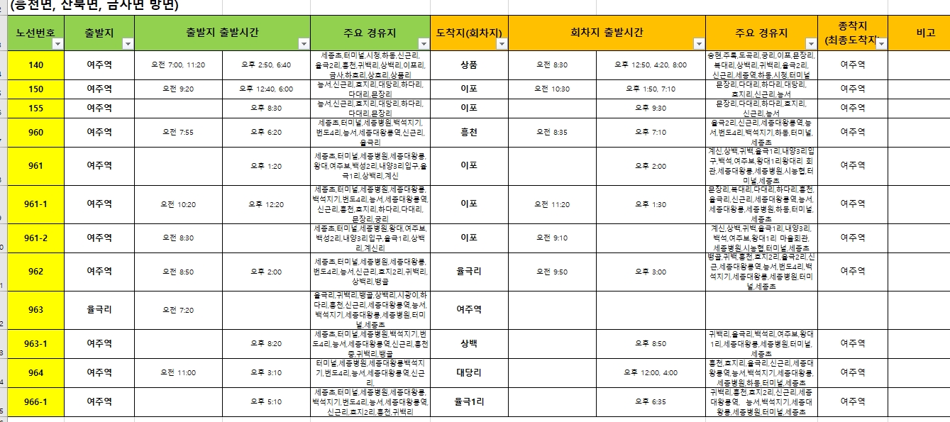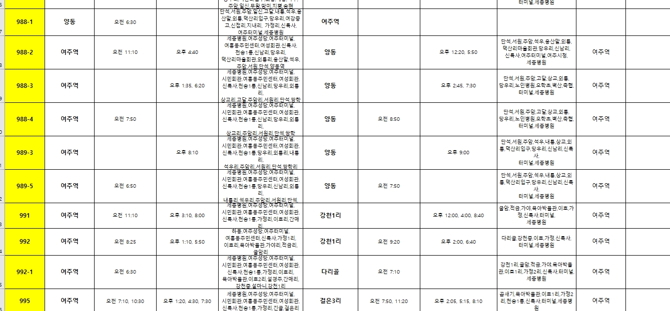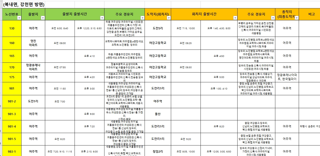 그래서 여주에서는 버스 시간표 확인이 이동의 첫 단계가 된다.