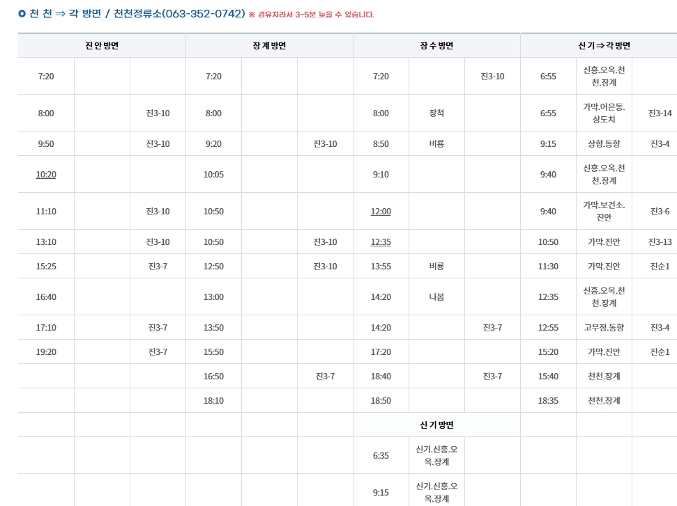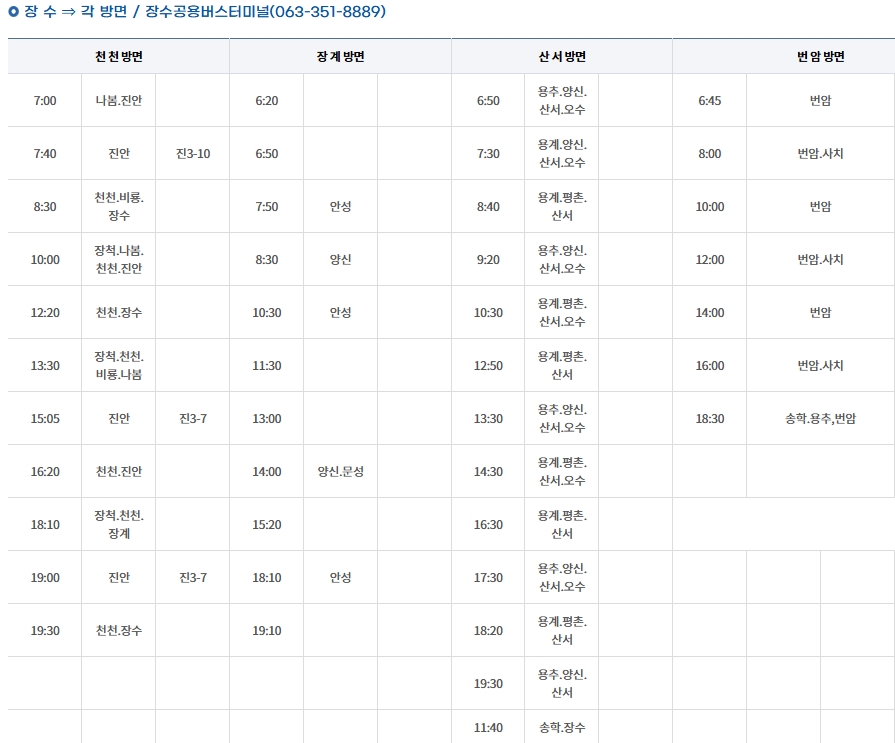 장수군 시내버스 시간표 (2025년 기준) ⏰