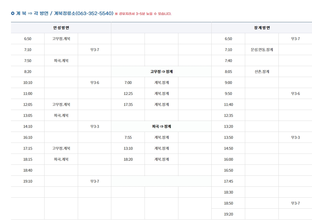 계남·계북 방면 노선: 오전/오후 2회 운행. 노인 복지센터, 보건지소 경유.