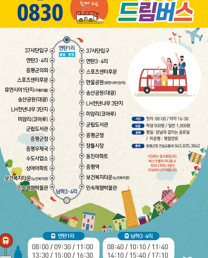 증평군 시내버스 및 농어촌버스 시간표 총정리