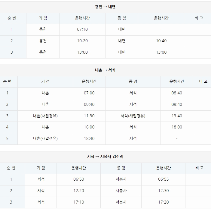 더 자세한 홍천 시내버스 시간표 및 노선 정보는 홍천군 대중교통정보 웹사이트에서 확인하실 수 있습니다.