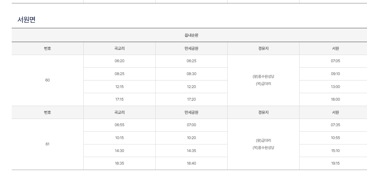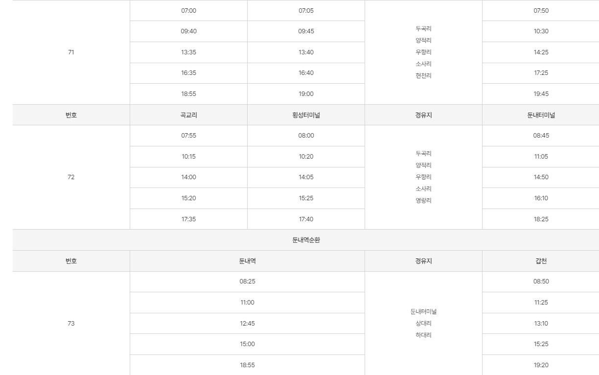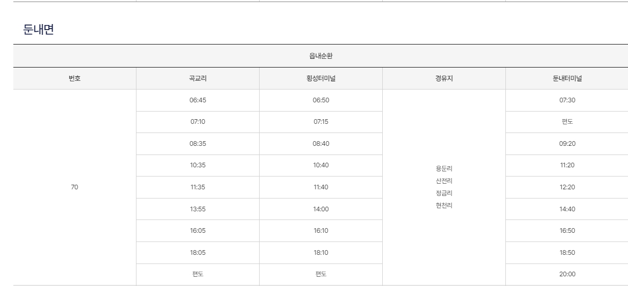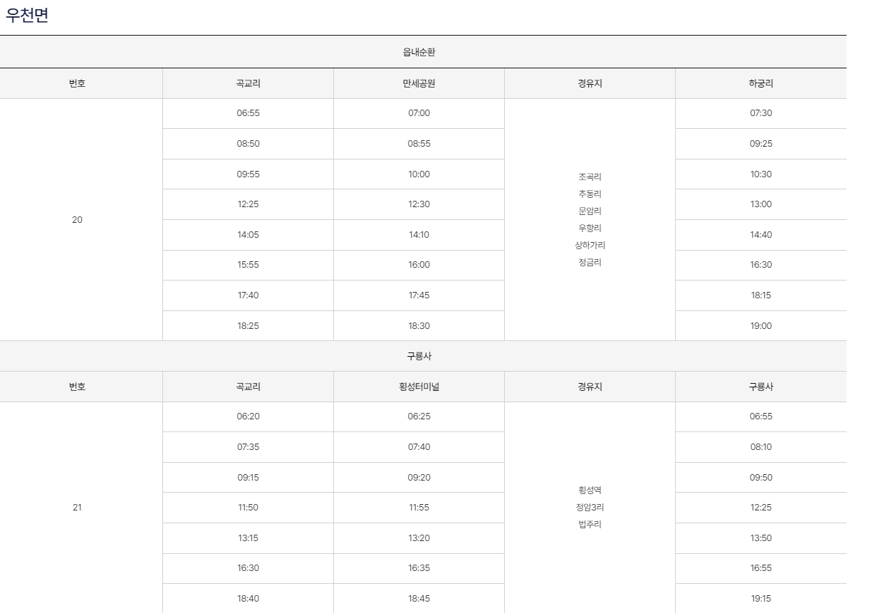 더 자세한 횡성 시내버스 시간표 및 노선 정보는 횡성군 대중교통정보 웹사이트에서 확인하실 수 있습니다.
